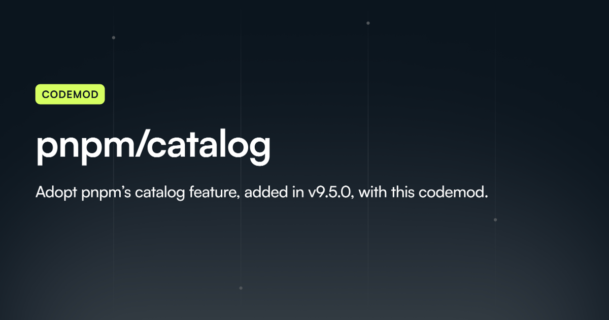 Adopt pnpm's catalog feature, added in v9.5.0, with this codemod.